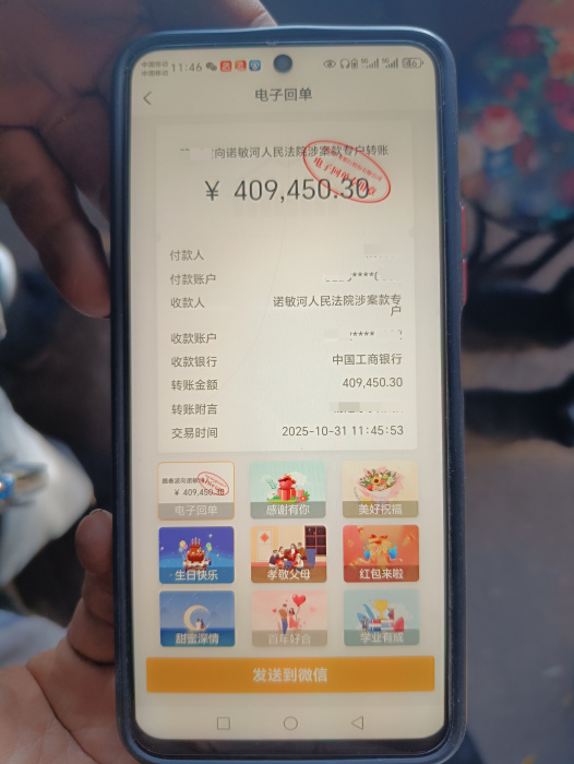 随后,干警们分为两组,一组监督装车、押运至指定粮库,另一组提前抵达,对接称重、管控款项。冬夜的寒意抵不住执行的决心,干警们连续奋战至次日中午,最终将涉案玉米全部变现,40万元价款分文不少汇入法院执行专户。